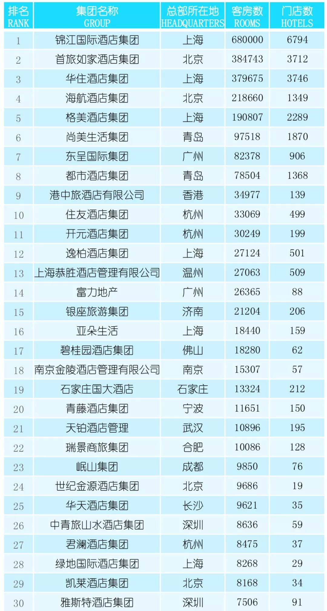 图:中国连锁酒店品牌30强