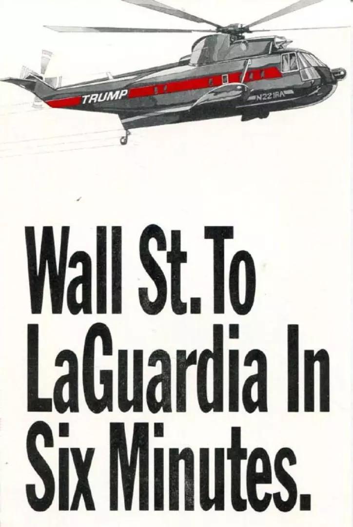 1989年,以特朗普名字命名的航空公司Trump Shuttle(特朗普快线)成立,拥有私人飞机的他当然也不会延续接手前廉价航空的老路线,转而做起了高端人群的生意。其中一项服务就是,为金融精英们提供从华尔街到机场的直升机航线,每天高达8班。在纽约和东汉普顿机场之间,直升机还会为特朗普的赌场运送乘客。