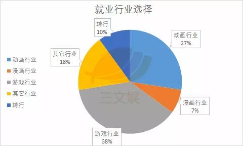 而也有部分人因为发展空间有限和压力太大而选择了转行,他们更多地转行去了媒体行业以及插画行业。也有部分人从事的是和动画或美术相关的教育行业。虽然转行了,但是仍然与自己的专业有关联。