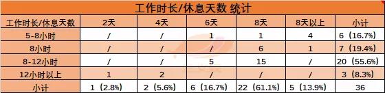 根据统计,选择每天工作时长8-12小时的最多,超过一半。每个月节假天数8天的最多,占比61.1%。两个标准结合看,工作8-12个小时+休假8天的也是交叉组合里最多的,占比约41.7%,也就是说,“995”工作制是大部分人的写照,这里也能看到,做动画、游戏以及相关岗位确实很辛苦,加班晚点是常事。
