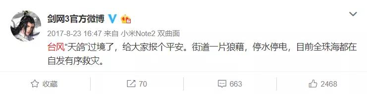 《剑网3》重制版上线之前,金山电脑大厦却遭遇了史上最大的“浩劫”。2017年8月22日《剑网3》8周年当天,台风“天鸽”席卷了珠海。