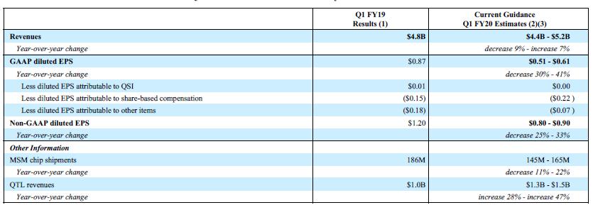 预计四季度MSM(含基带芯片的处理器)芯片出货量1.45-1.65亿,同比下滑11%至22%;中值1.55亿高于市场预期的1.498亿。
