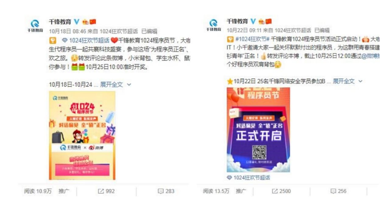 在千锋教育举办1024程序员节一系列活动中,微博、抖音作为千锋教育此次活动的线上阵地,承当了此次活动传播的重任,是良驹是跑车,是千锋教育布局的第一步大棋。