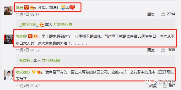 大意是,因不可抗力读库库房要紧急搬走,而大量图书无法运走的话会进行优惠甩卖,希望读者们购书支援。这条信息下面还有姚晨等名人发声支持。刘畅让同事发来购书链接,一下子买了3000元的各类书籍。