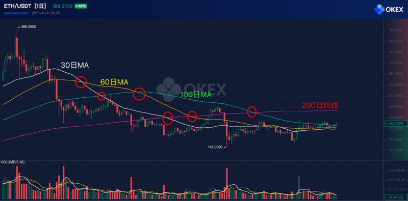 二级市场方面,目前 ETH 价格受到两大阻力:一个是 100 日均线,目前暂报 194 美元;另外一个是 200 日均线,暂报 212 美元。