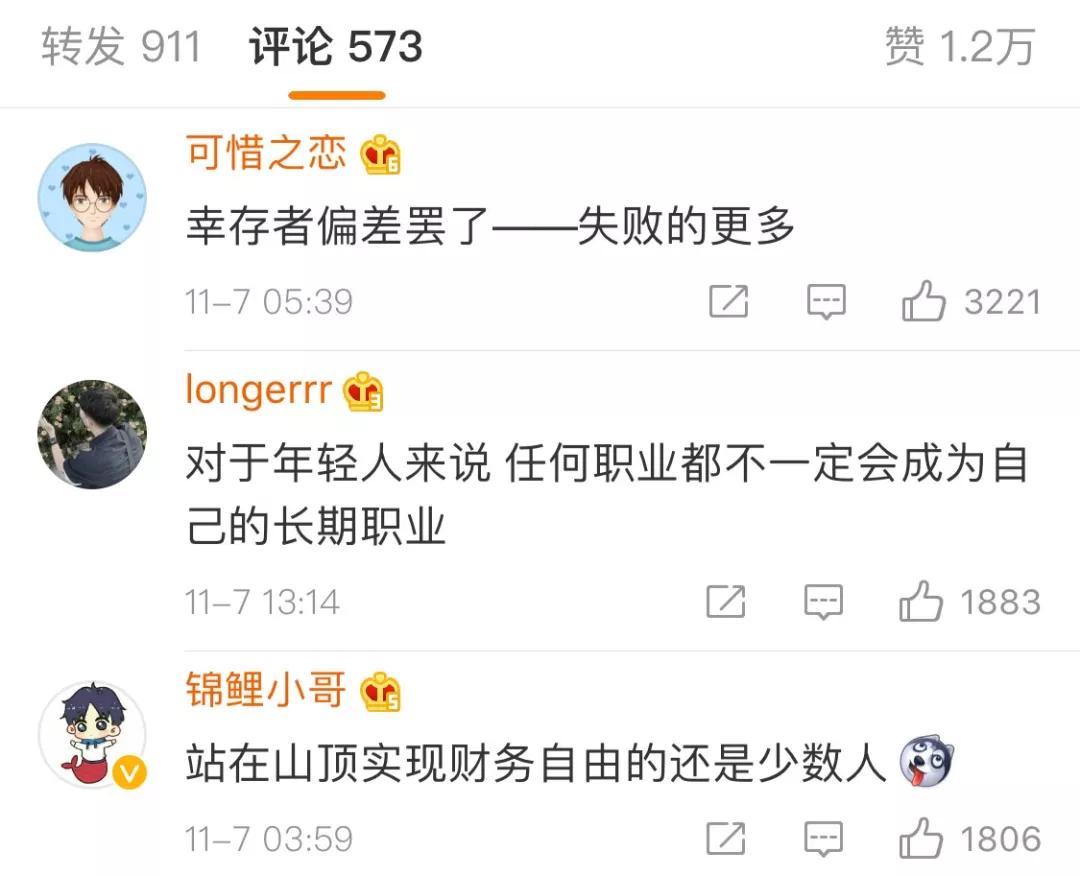 在这次“自媒体能不能当职业”的讨论中,热评特别有意思: