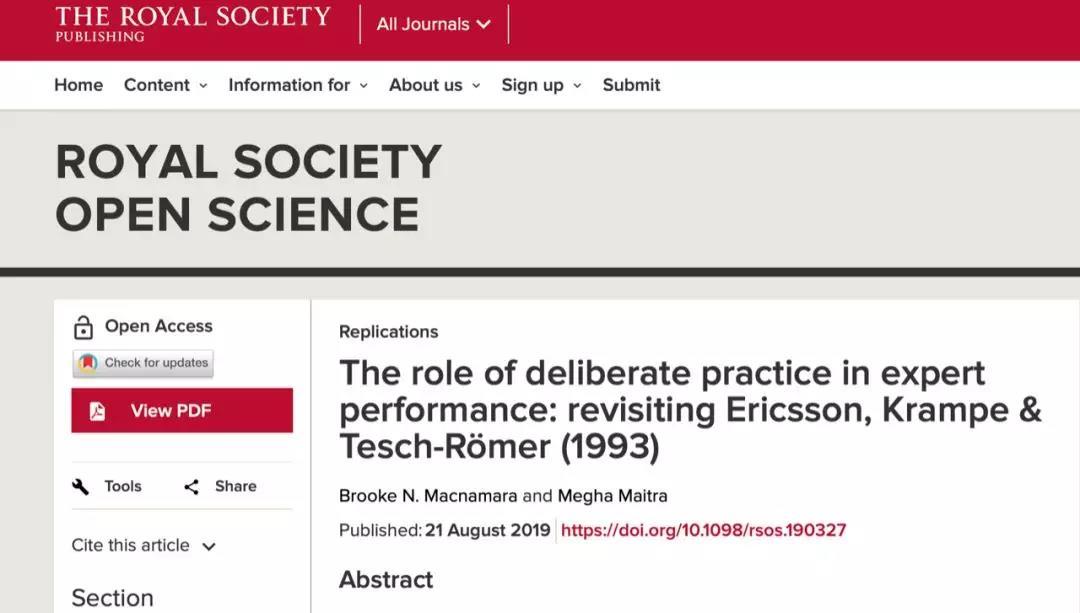 近日,《皇家学会开放科学》刊载了一篇研究,心理学家麦克纳马拉(Brooke N.Macnamara)和梅特拉(Megha Maitra)重做了1993年的“一万小时”实验后发现“一万小时定律”并非完全正确。