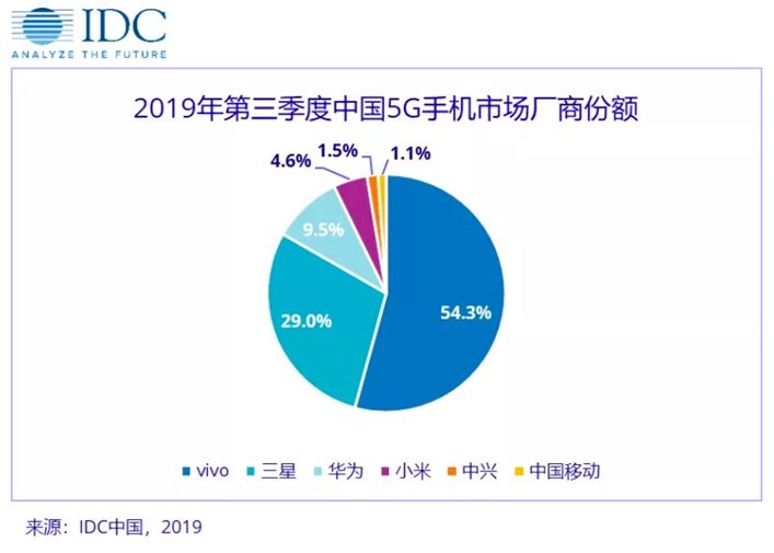 近日,IDC发布的中国5G手机出货量数据显示,vivo以54.3%的优势占据了中国5G市场的半壁江山。