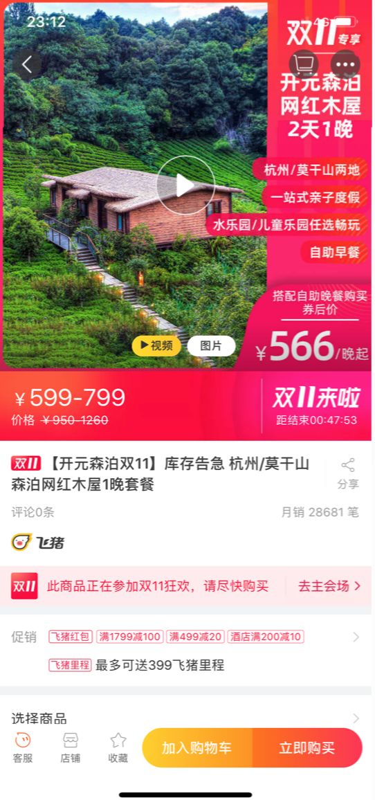 网红亲子酒店开元森泊木屋已经预订2.1万件,按照旗下两间酒店约800间客房计算,相当于整整一个月的客房量已被双十一承包。