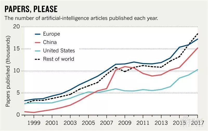 根据Scopus的数据,从2007至2017年,中国发表的AI相关论文数量从5995增至15199篇。