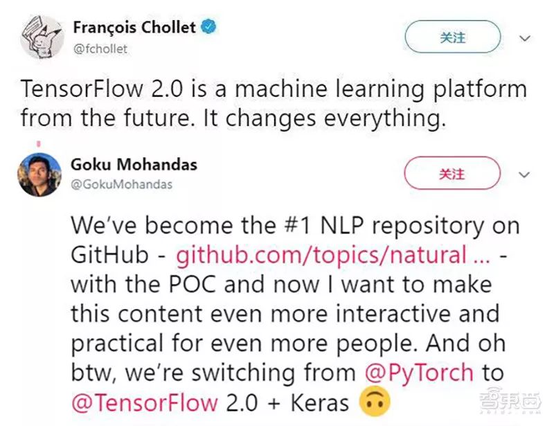 前者有谷歌深度学习科学家、Keras作者Franois称赞为来自未来的机器学习平台,苹果公司AI研究员Goku Mohandas说他们正从PyTorch转向TensorFlow 2.0+Keras。后者则获得图灵奖得主、深度学习鼻祖之一Yann LeCun的转发支持。