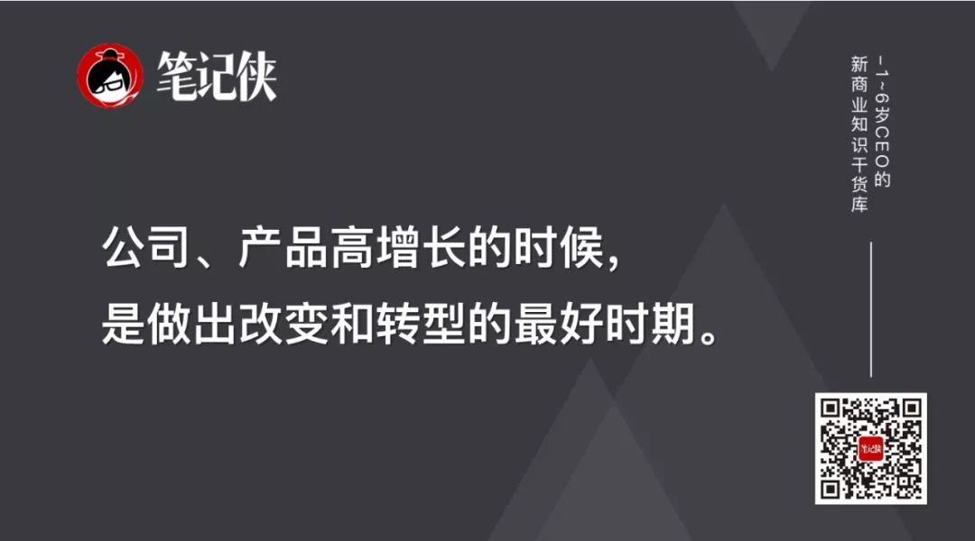 很多公司在做增长咨询时,我都会跟他们说要珍惜高增长的阶段,因为公司、产品高增长的时候,是做出改变和转型的最好时期。