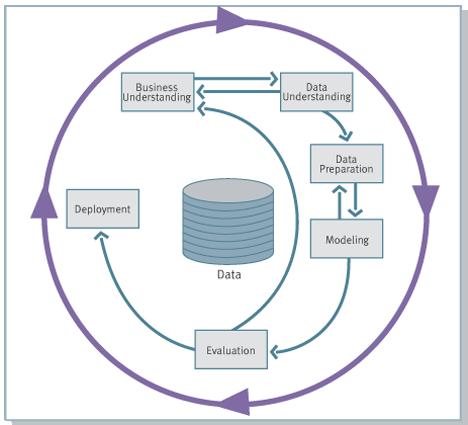 根据广受欢迎的 CRISP-DM 数据分析项目的管理方法论,数据分析项目的实施分为 6 个阶段,每个阶段中,分析师或者数据科学家都是直接参与的: