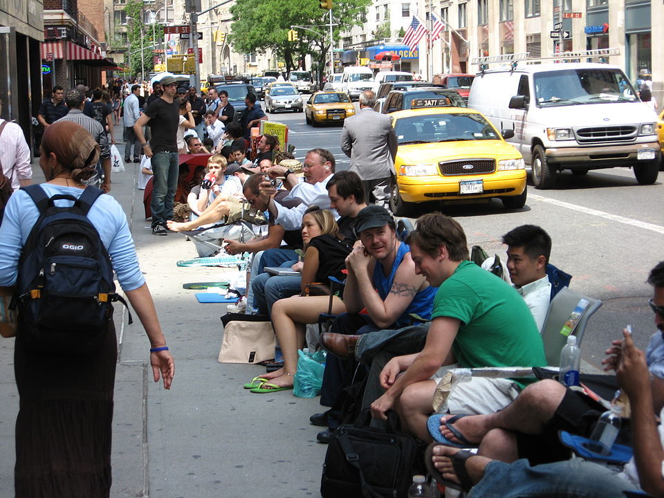 2007 年,在 AT&T 门口等待购买初代 iPhone 的美国人 图片来源:维基百科