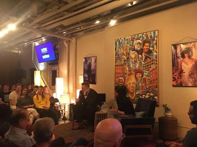 访谈会当晚,Renee DiResta坐在沙发上不时轻轻摇晃手中的酒杯,面对主持人的连炮珠式发问侃侃而谈并和现场观众展开热烈讨论。