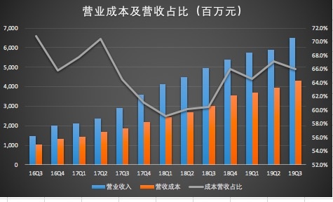 三季度营收65亿,营业成本增速超营收增速