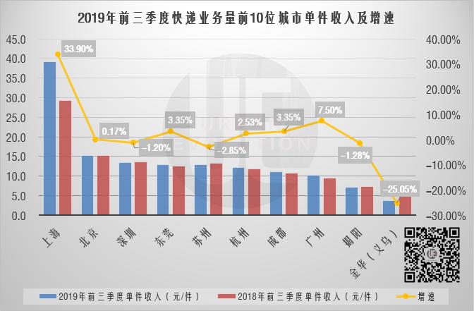 从全国情况来看,单件收入从去年前三季度12.2元,降低至今年前三季度12.0元。为何在全国下降同时,上海仍能得以上涨?
