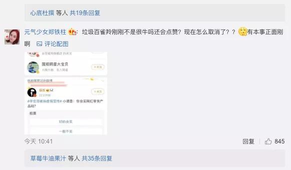 现在已不知真假,百雀羚旗下一个微博的点赞行为,又火上浇油。