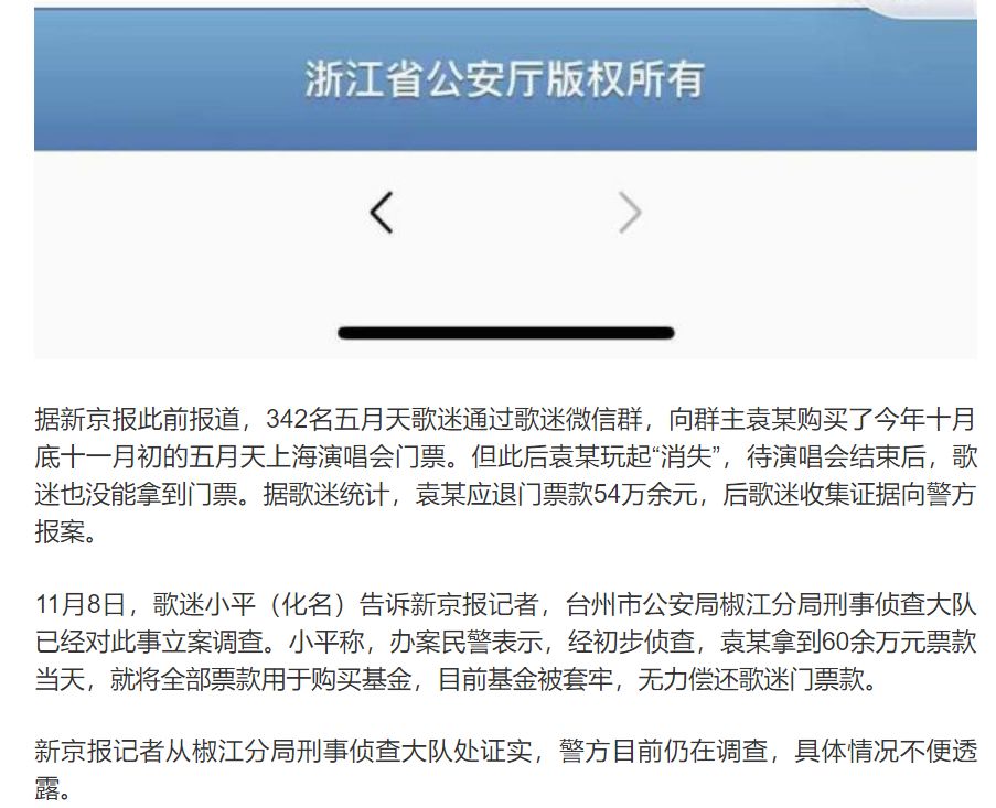 网络转账之后销声匿迹是诈骗常见操作。近日,又有300多名五月天歌迷在歌迷微信群里向群主购买门票,结果演唱会结束门票也没到手,合计54万款项也没退还,随后歌迷向警方报案。