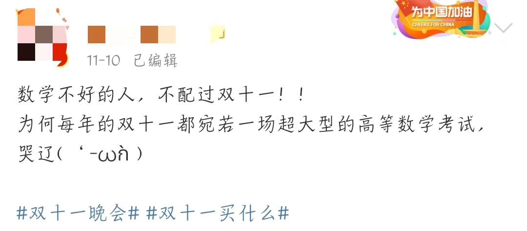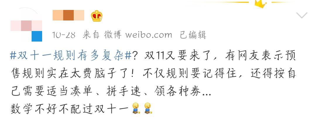 此前,一则“数学不好”的梗成为了微博热门,很多人以此梗发表了自己对于双十一看法: