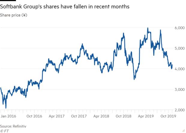 软银集团股价近几个月呈下降趋势