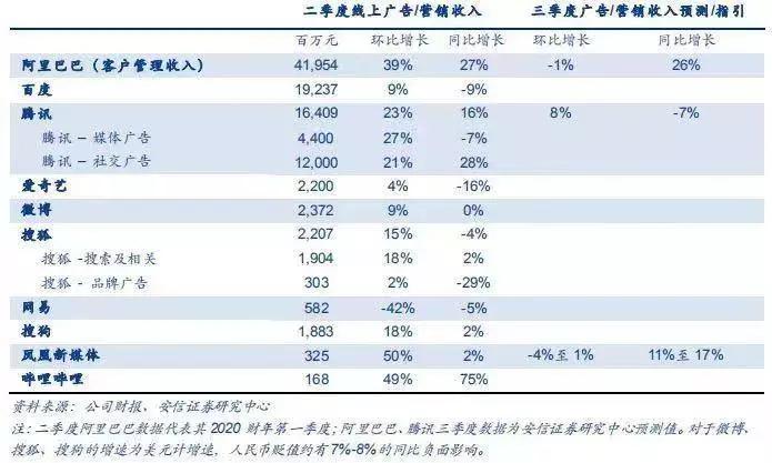 各大公司二季度线上广告对比