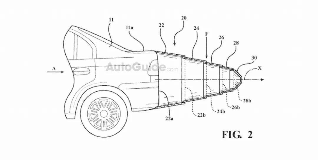 2016年,丰田北美研发部门TEMA提出了一项独特的伸缩装置设计专利,以提高车辆的空气动力学效率。它描述了一种渐缩的,可展开的空气阻力减小机构。有点像重载卡车给NASA运输的那些航空部件,但它是用于汽车的,看起来更加蠢萌。