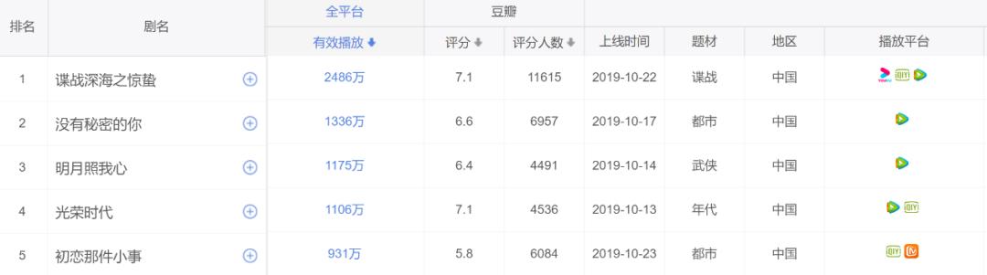 据云合数据,10月份上线的全部剧集中,《明月照我心》播出后一周的累计有效播放量排名第三,仅次于《谍战深海之惊蛰》和《没有秘密的你》。作为一部主演均为新人的单平台网剧,这样的成绩已属不易。