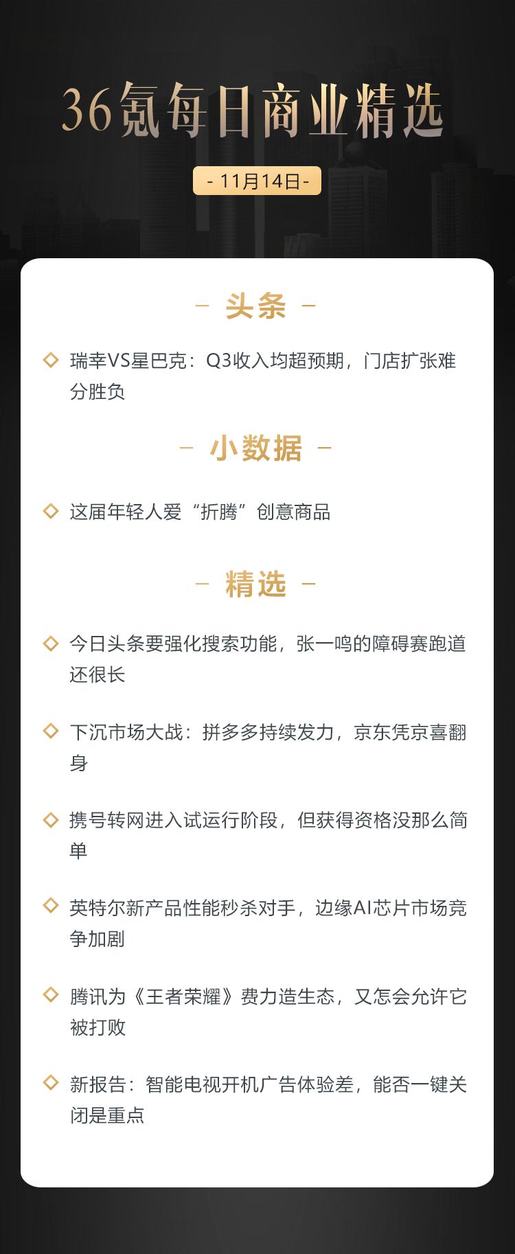本文来自36氪付费栏目《36氪每日商业精选》——11月14日
