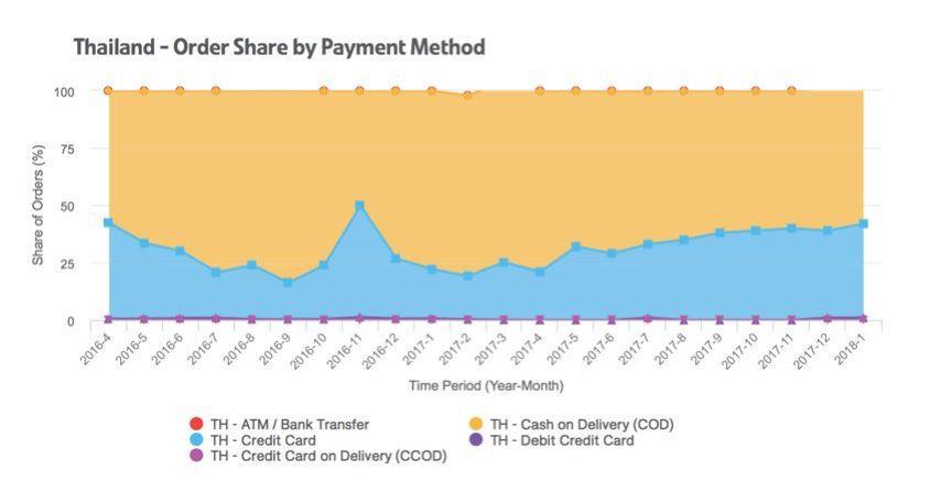 若想发展电商平台,支付问题是一大难题,根据泰国电商代运营 aCommerce 的数据,目前货到付款仍然是泰国消费者首选的支付方式,在这样的消费习惯下不仅会导致退单率非常高,还会产生额外的费用,大大地降低了效率。因此将国民的支付习惯扭转过是各大平台未来必须要努力改善的问题。