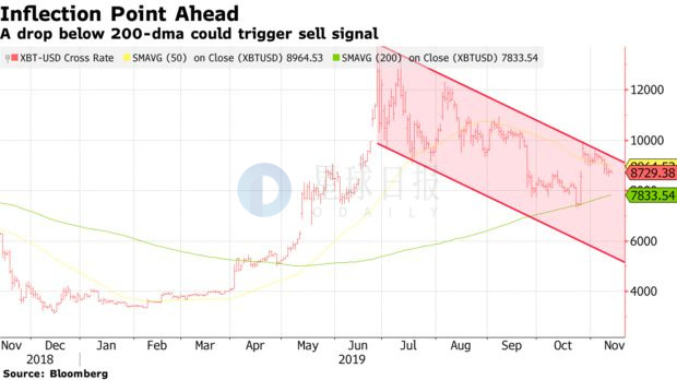 彭博社报道称,比特币(BTC)价格已接近看跌的“拐点”。由于近期反弹降温,比特币的技术趋势即将发出“卖出警报”。这个卖出警报是因为BTC已经跌破50日移动均线,并似乎准备跌破200日移动均线。尽管彭博社这篇报道预期将出现看跌“拐点”,但其他分析师表示相对乐观。