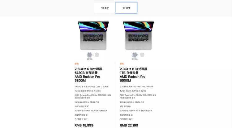 哦,不对,还有价格。16 寸 MacBook Pro 起售价为 18999 元,配置 2.6GHz i7处理器,8GB+512GB。目前具体上市日期还有待公布。