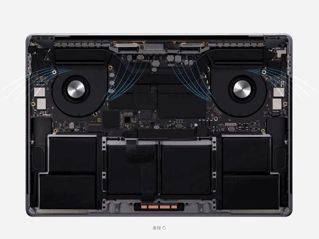 同时苹果给这个燥热的处理器升级了散热系统,官方称其散热器增大了 35%,MacBook Pro 的最大持续功率也因此最多可提升 12W。