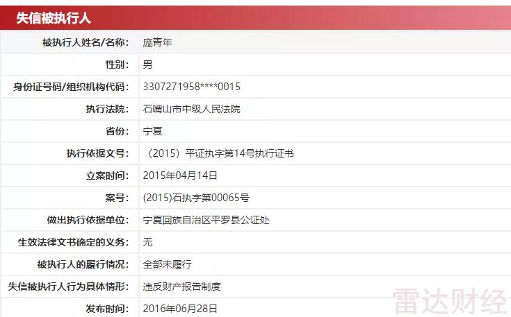 目前,青年汽车集团涉及的诉讼达105起,25次被列为失信被执行人(俗称“老赖”),而其实控人庞青年,也超过20次被列为失信被执行人。