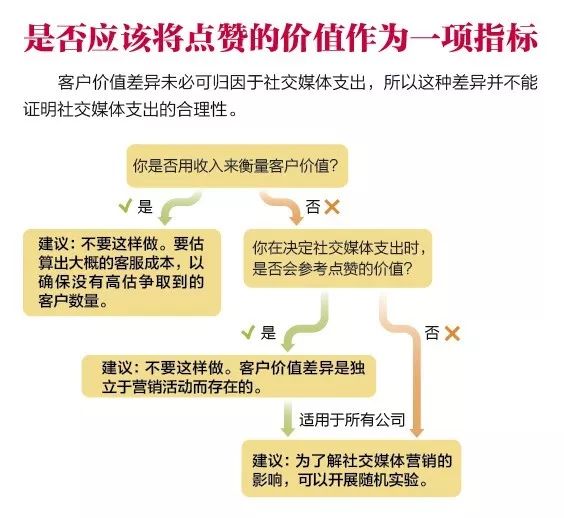 厘清点赞的价值 管理者不要理所当然地认为,两个客户群体之间的价值差异是由社交媒体营销活动导致的。如果有差异存在,他们需要分析的是,这些差异是产生于社交媒体营销活动之前还是之后。