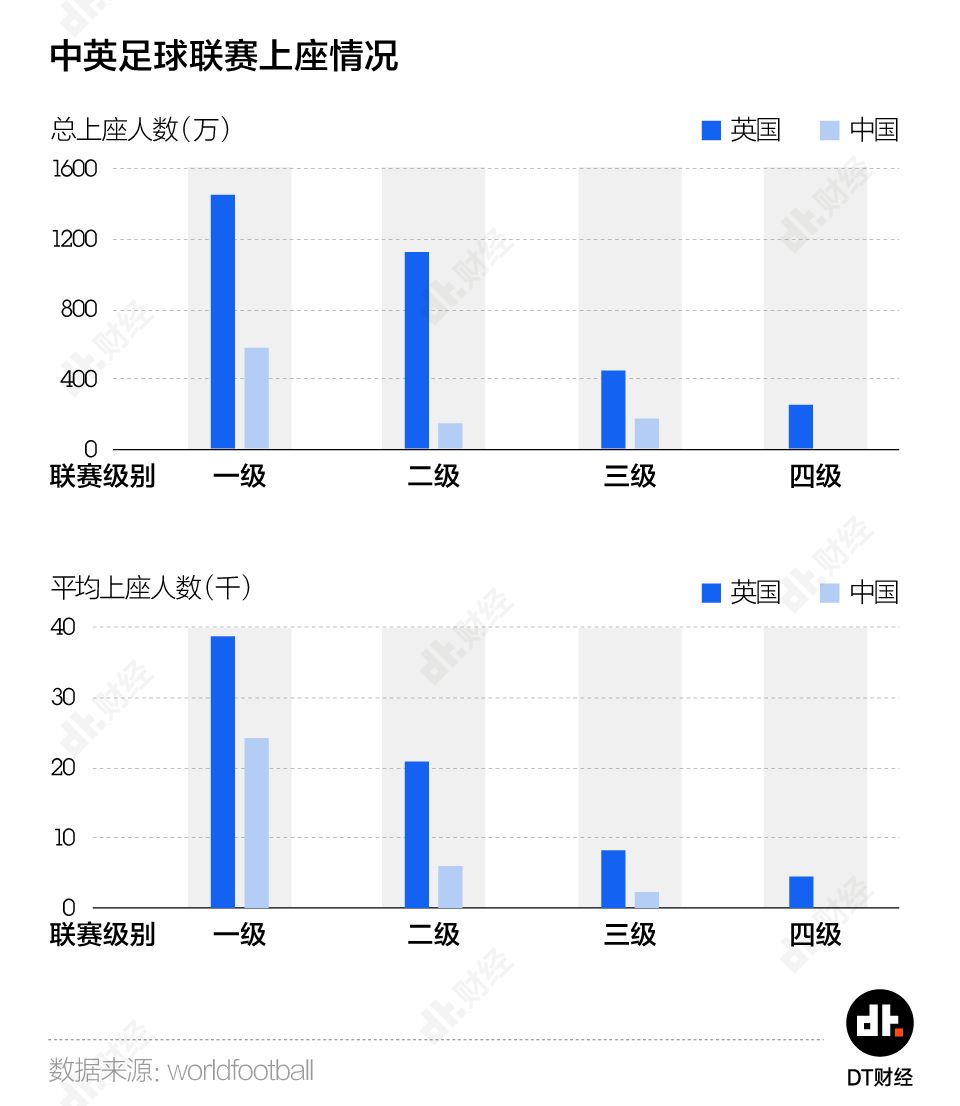 英国人口不到中国零头的零头,有英超、英冠、英甲、英乙四级职业足球联赛,2018年合计现场观赛人次达到了3281万人次;相比之下,我们中国只有中超、中甲、中乙三级职业足球联赛,2018年合计现场观赛人次仅为895万人次。