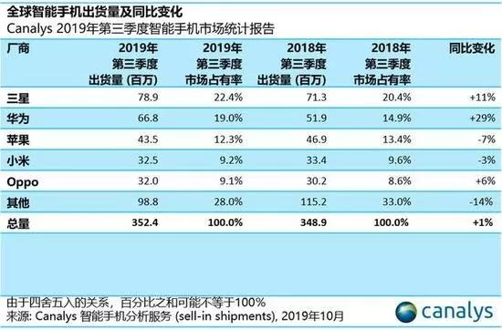 结果就是,今年第三季度,华为在中国国内市场占有率已经突破了42%,而vivo、Oppo和小米的出货量则暴跌20%-30%,同比减少了400-500万部。