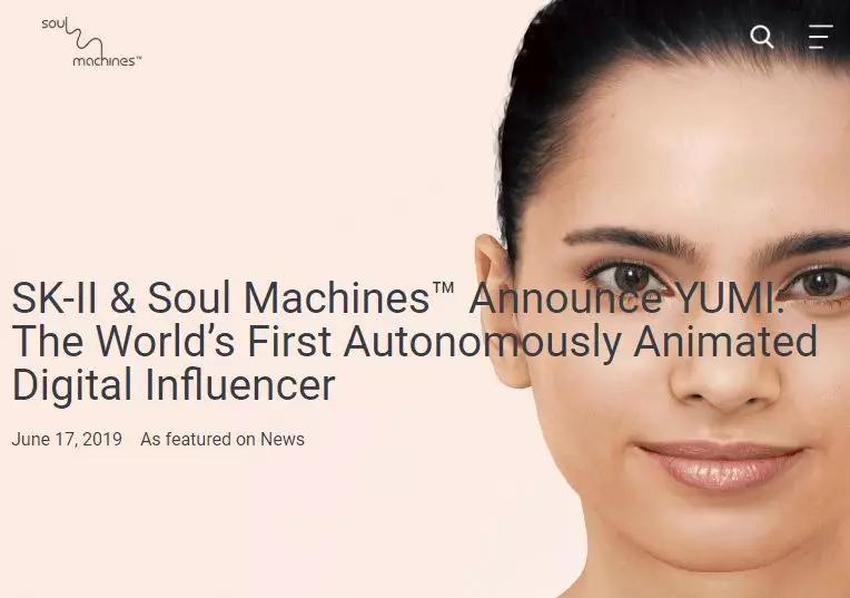 对真人形象需求更高的时尚、美妆类品牌对vmodel有着天然的亲和。许多品牌推出了自己的拟真虚拟模特,比如SK-II与AI公司Soul Machines合作推出的拟真虚拟模特Yumi。