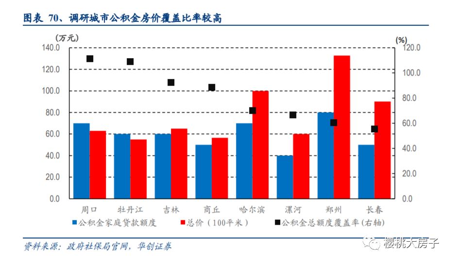 华创证券去中西部城市做调研发现,小城市的公积金提取额度高,而房子的套均总价又低,基本上平均只有55-65万/套。