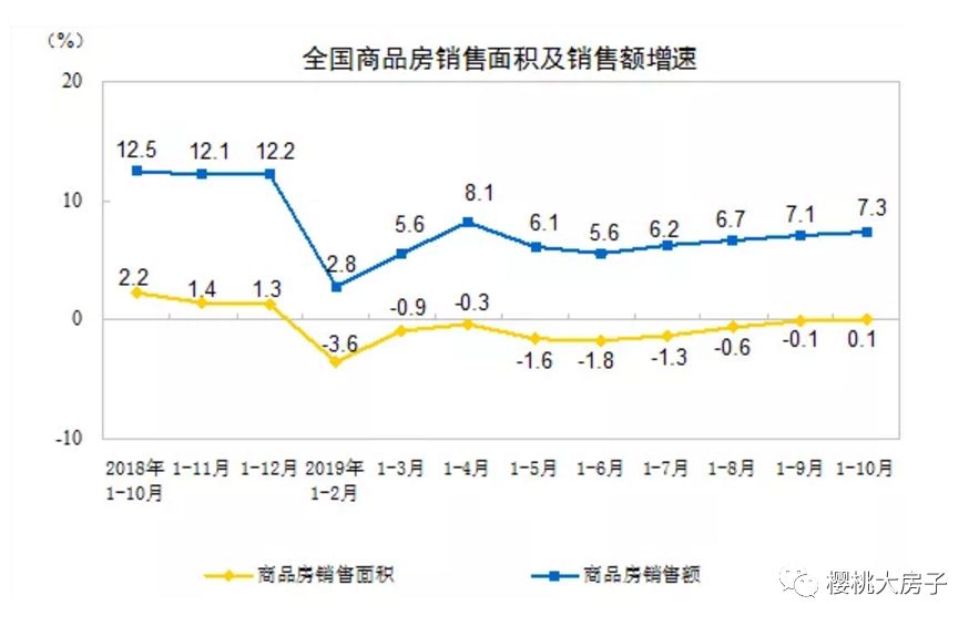 今天统计局公布数据,今年1-10月,商品房销售额124417亿元,增长7.3%,增速加快0.2个百分点。其中,住宅销售额增长10.8%。