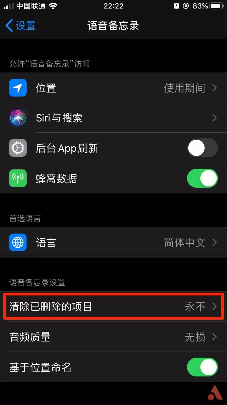 「设置」 - 「语音备忘录」 - 「清除已删除项目」可以帮你立即清除已删除的项目。