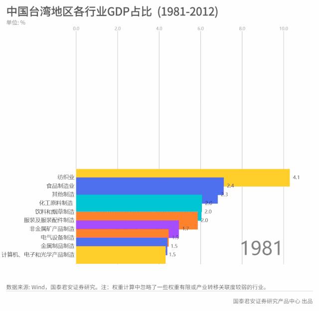 资料来源:台湾行政院主计处,《“我国”制造业传统产业变迁之研究》,国泰君安证券研究