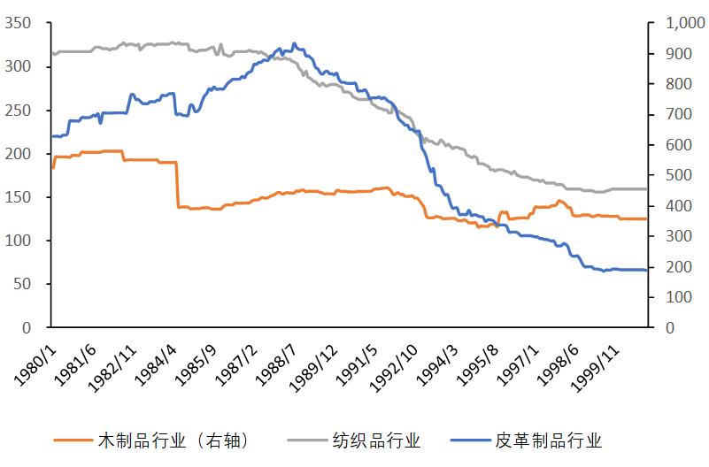 在六十年代与七十年代两个阶段的产业转移中,我们发现产业外迁与日美贸易战节奏基本一致,往往遵循着“对美出口扩大-与美贸易摩擦加剧-日方自愿出口限制”或“美方进行贸易保护-日方出口数量下降-产业逐渐转移”的路径。