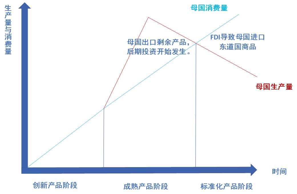 对于发达国家而言,创新产品的生产集中在国内,成熟产品的生产开始逐步向其他发达国家进行转移,标准产品的生产则开始向发展中国家转移。