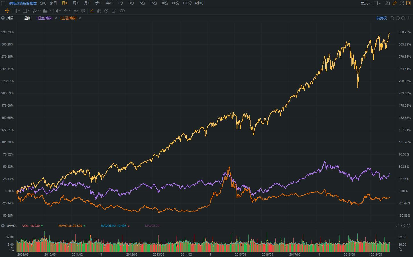 站在当下的时点,依然有大量的新技术在孕育发展,围绕依然有广阔空间,新科技的迭代速度越来越快,围绕新技术的普及,未来依然会出现伟大的投资机会。也许科技巨头座次可能会发生变化,有些可能甚至会消失在激烈的竞争中,但是科技股作为一个整体,在整个市场的占比大概率会是越来越高,如果回看过去十年各个市场的整体走势,长期来看,科技股更多的纳指的走势比只有腾讯独立支撑的恒指走势更强,比拥有工行、建行以传统产业巨头为主的上证更强。