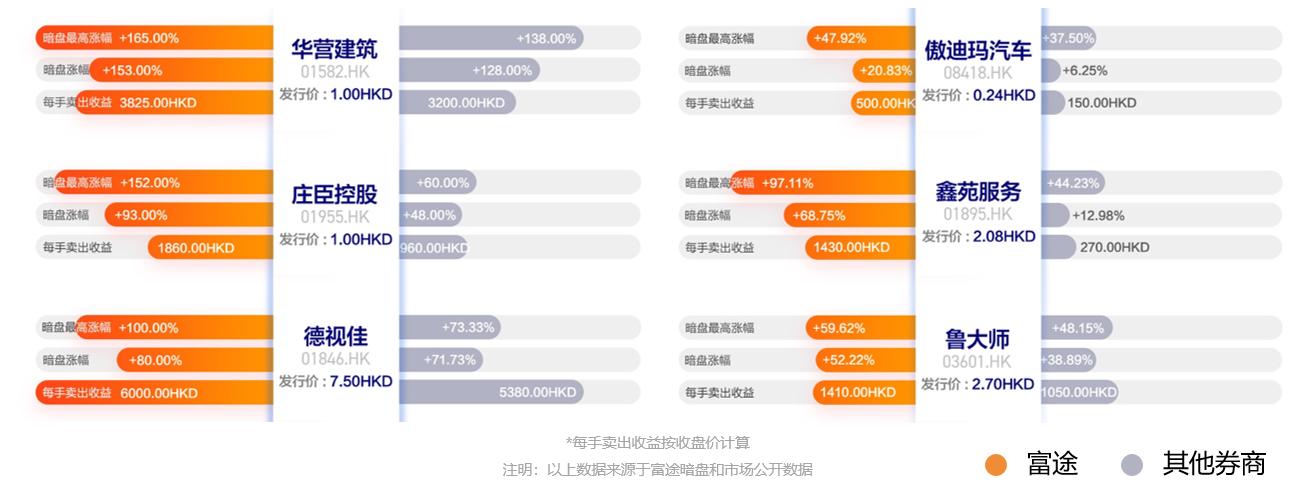 由于港股市场比较灵活,在IPO新股上市之前还有暗盘服务(券商内部系统进行报价撮合),暗盘作为新股价格发现的工具获得港股投资者的认可,在拿到7号牌(提供自动化交易服务)之后,富途推出自主研发的暗盘交易撮合系统,面向投资者自主提供新的暗盘交易服务,原有暗盘交易体验将得到全新升级,订单处理速度直接从8笔/s提升到300笔/s,由于新的暗盘交易系统获得投资者认可,交易更为活跃,暗盘定价权进一步的向富途迁移。