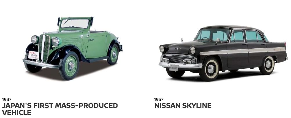 1937 年,日产推出了日本第一批量产汽车 Datsun Type 15 。尽管这批汽车全部基于英国奥斯汀汽车改造而来,但仍然奠定了日本国产汽车的信心。二战期间,日产是日本军方最大的军车供应商,为此开拓了皮卡生产线。战争结束后,日产在轿跑车和皮卡车上双向发力,不仅推出了日产天际线(即经典款 GT-R 的前身),还推出了 Datsun 紧凑型皮卡。220 个美国军人购买了这种车,爱不释手,不惜自费运回美国。可以说,日本汽车出口海外的第一枪,就是日产打响的。