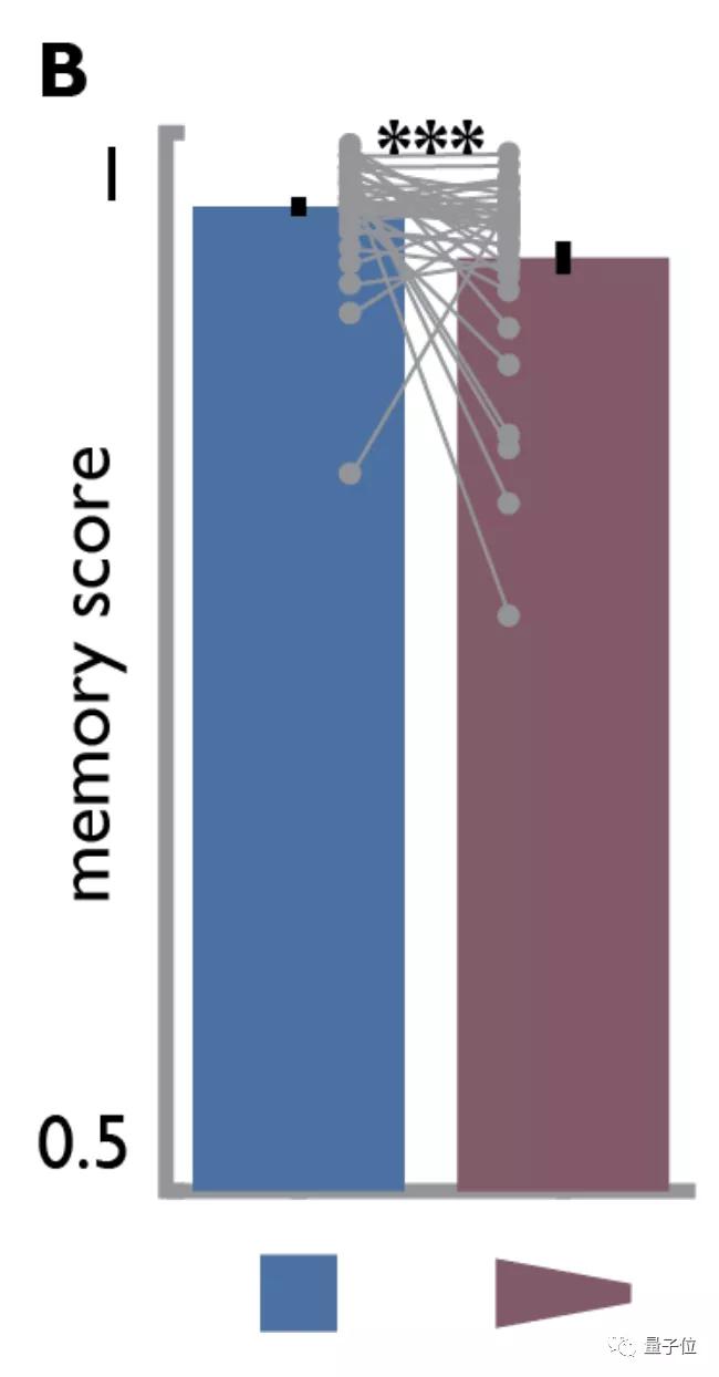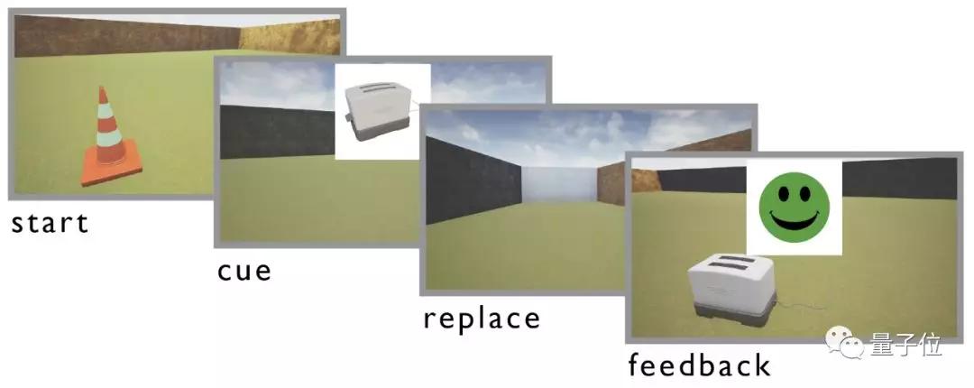 之后,除了锥桶之外的其他目标消失,参与者回到开始的锥桶处,研究者给他们出题,随机展示一个目标的图形,他们根据记忆跑到这个目标之前的位置,如果地方对了,会收获一个笑脸。