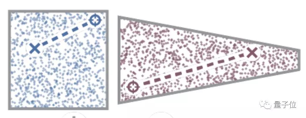 实验在两种尺寸的虚拟环境中进行,一种是36vm×76vm×8vm×76vm的梯形环境,这里的vm是“虚拟米(virtual meters)”,VR环境中特有的长度计量单位,另一种是40.27vm×40.27vm的正方形环境。