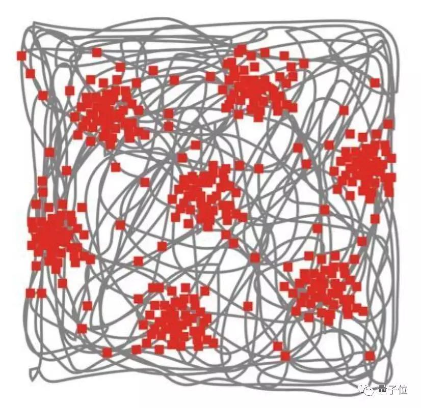 下图中的灰色线代表了老鼠走过的路径,红色点表示在这个位置时,细胞属于激活状态。